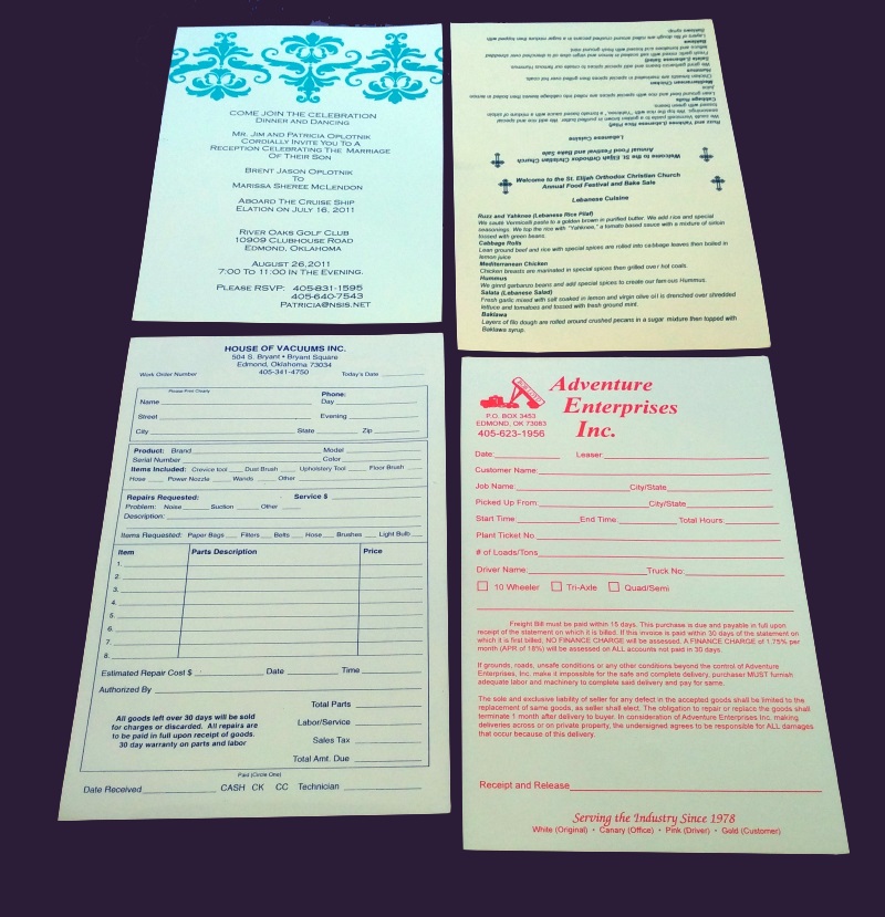 Below, find some thumbnails of sample products Oklahoma Executive Printing has printed. As with all website thumbnails, these are not print quality. If you wish to see the finished printed products, please come by and we would be happy to show our commercial printing work to you.