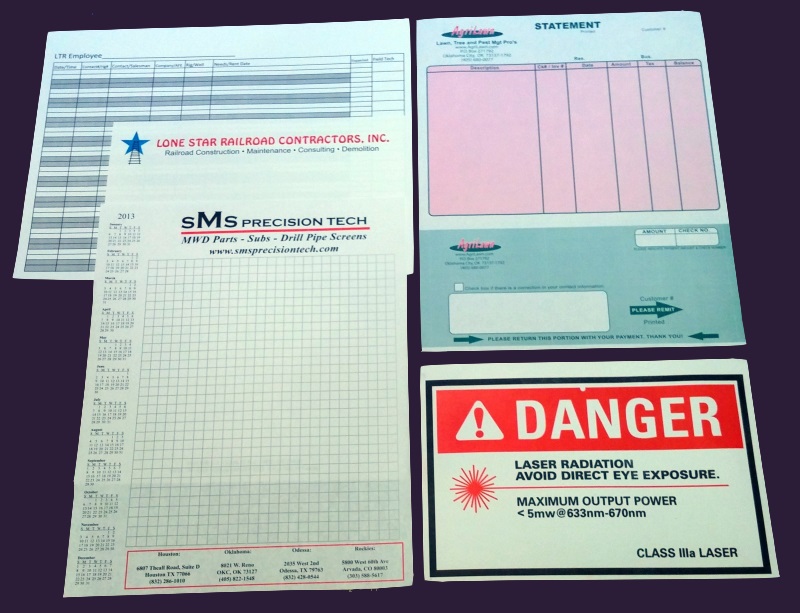 What can Oklahoma Executive Printing do for YOUR company to increase your productivity, decrease your paper work and increase employee productivity? We include samples of our work ONLY to help jog your memory about that special item you need and to help you with an idea for the type of printing you may want. The samples below do not accurately show the clarity of print in which we pride ourselves.